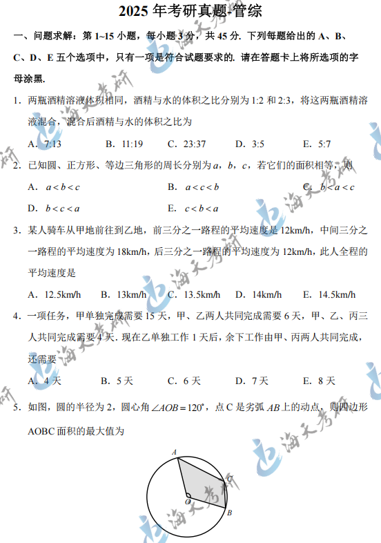 以上就是海天考研网为各位考生整理的2025考研管理类综合能力真题汇总完整版,持续为考研学子更新考研政治、数学、英语、396考研真题及答案解析等,各位考生可以根据自身需要关注收藏,及时查看完整版2025考研真题及答案解析。